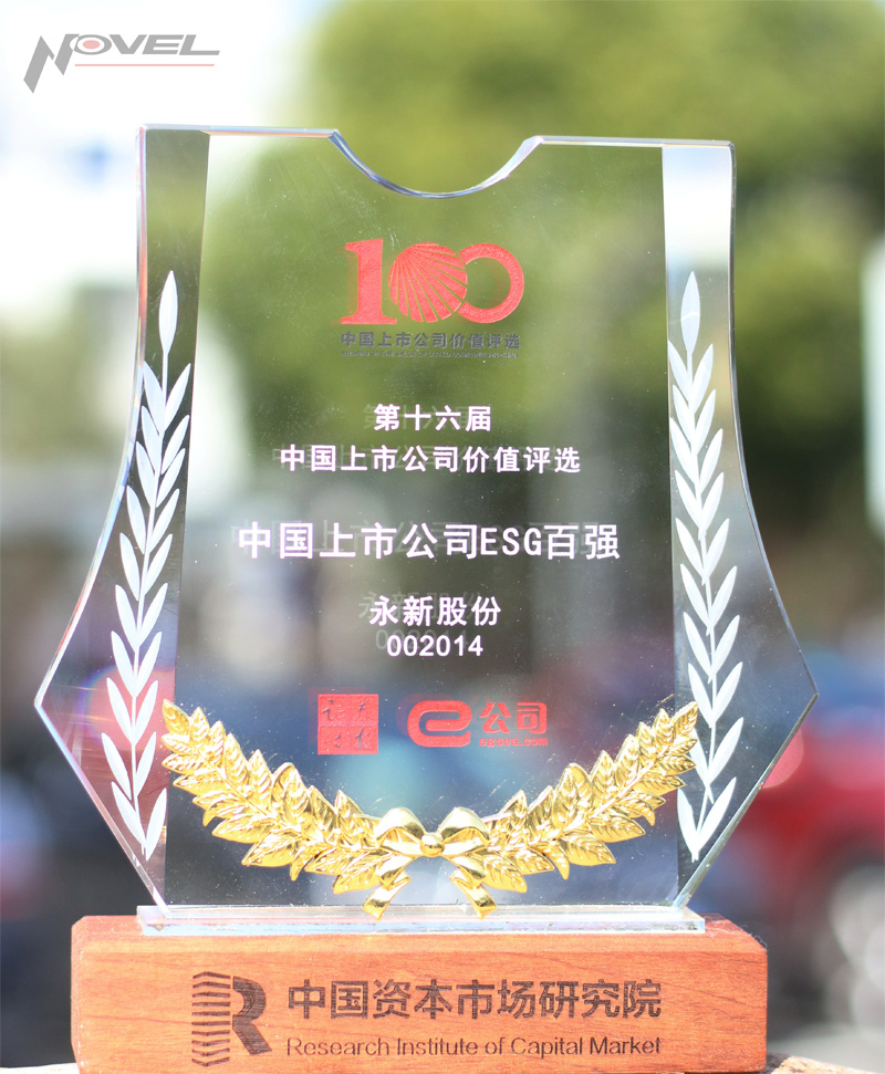永新股份獲得第十八屆中國上市公司價值評選 “中國上市公司ESG百強”稱號